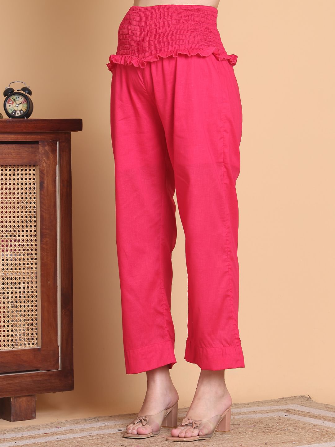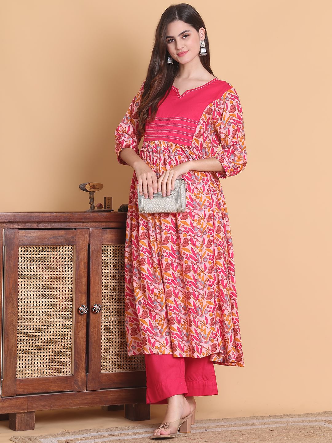 Pink Floral Cotton Calf Length Maternity Suit Set